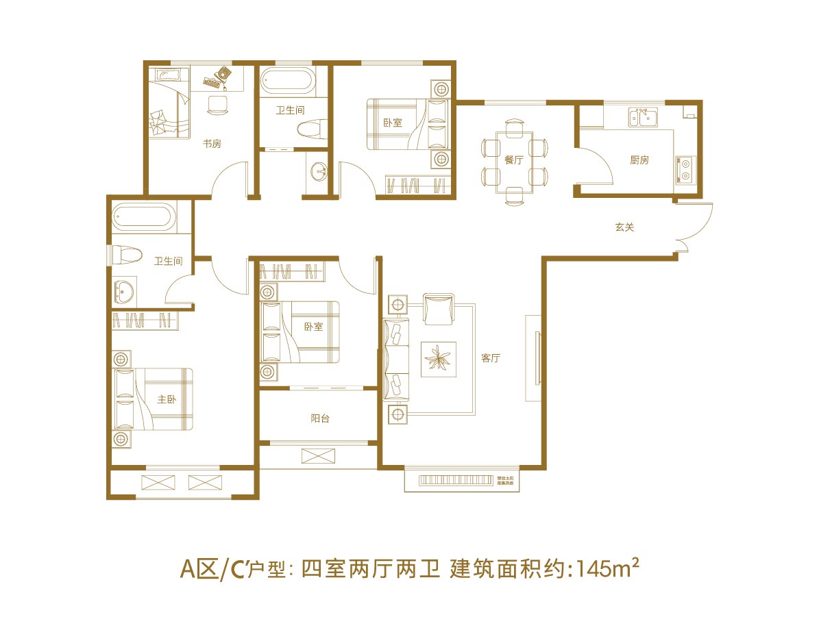 A區/C'戶型 4室2廳2衛 建面:145m2