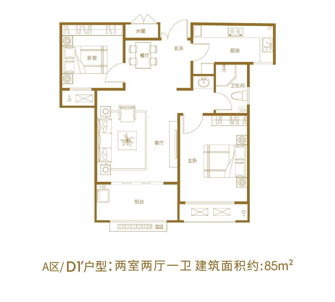 A區/D'戶型 2室2廳1衛 建面:85m2