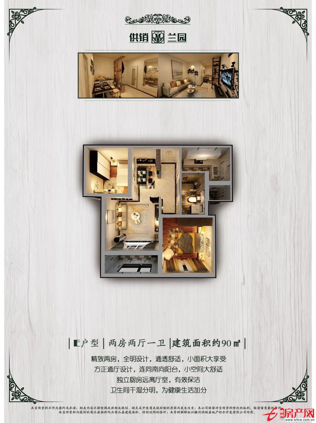 E戶型 2室2廳1衛 建面:90m2