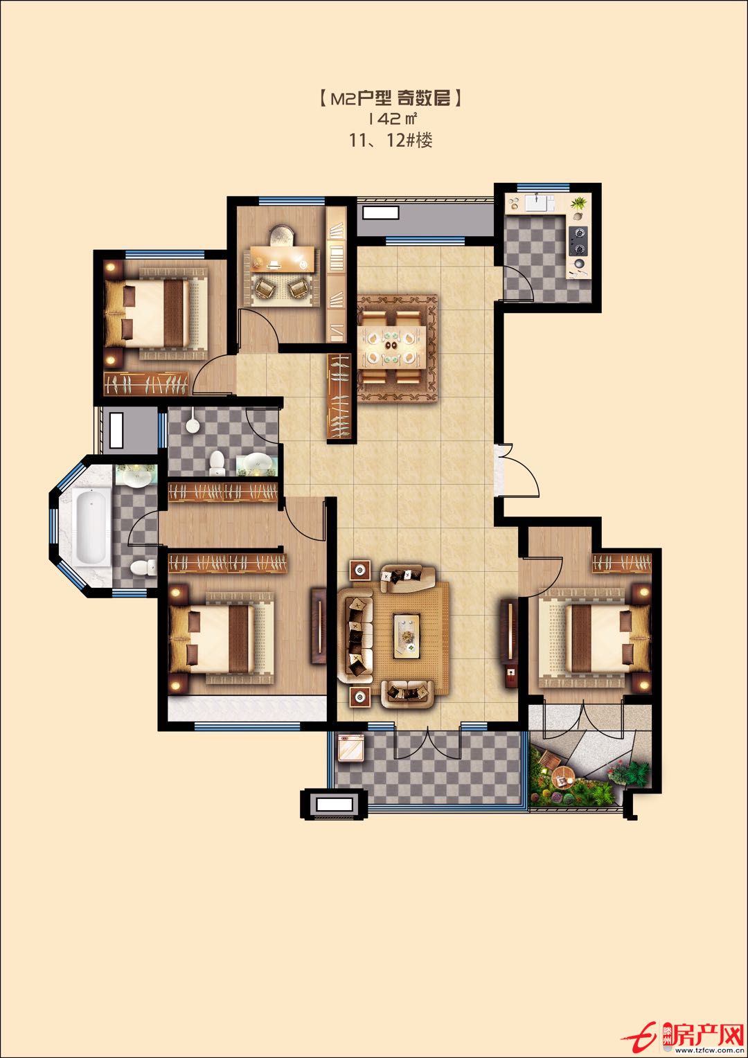 M2戶型 4室2廳2衛 建面:142m2