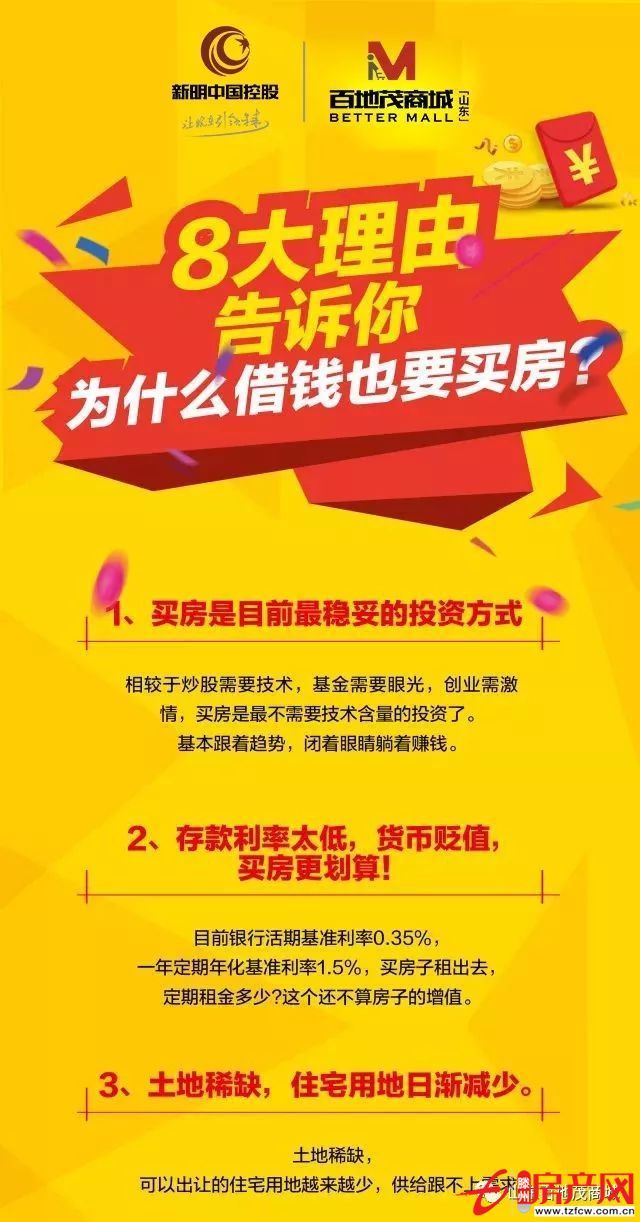 滕州房產網 2018-03-24著名財經作家吳曉波曾說過這么一句話,非常有道理。他說,為什么你努力奮斗,還是一無所獲?就是因為你老是不肯借錢買房!在吳老師的理財觀念里,房子就算咬牙借錢還是要買!山東百地茂商城百變LOFT位于城西核心位置的小戶型,多功能小戶型是你投資的首選...