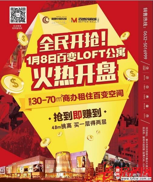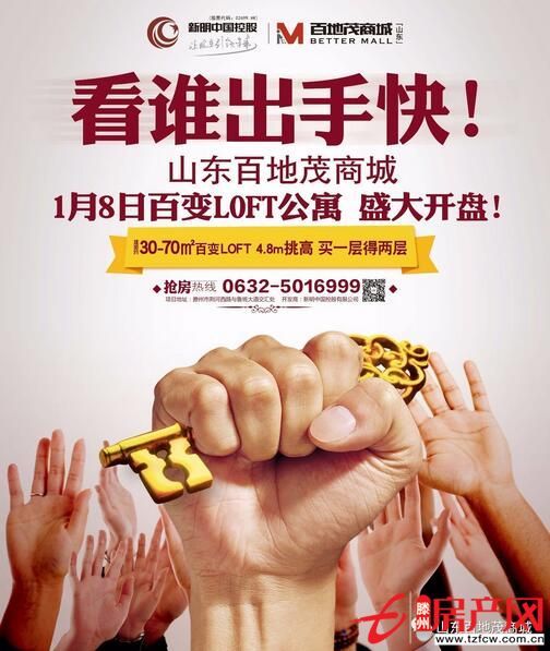 滕州房產網 2017-01-201月8日,新明中國旗下山東百地茂商城新品【百變LOFT公寓】耀世首開,一場火爆的搶房大戲在萬眾矚目中激情上演!廣大客戶群體對項目表現出來的熱情超乎想象,對于山東百地茂商城新品【百變LOFT公寓】有著挑剔眼光的市場客戶一直抱有很大的期許,1月...