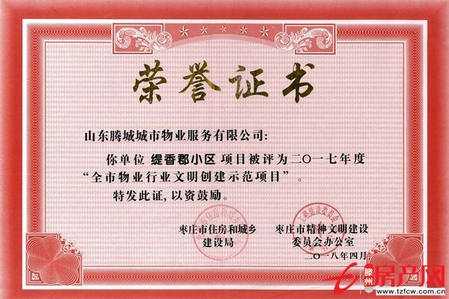 滕州房產網 2018-05-06日前,棗莊市物業管理暨行業文明創建工作推進會議召開。會上,由騰程物業公司管理的緹香郡小區獲得“全市物業行業文明創建示范項目”,該公司副經理呂文彬獲得“山東省物業行業文明服務明星”稱號。山東騰程城市物業服務有限公司為滕州市房管局下屬國有物業管...