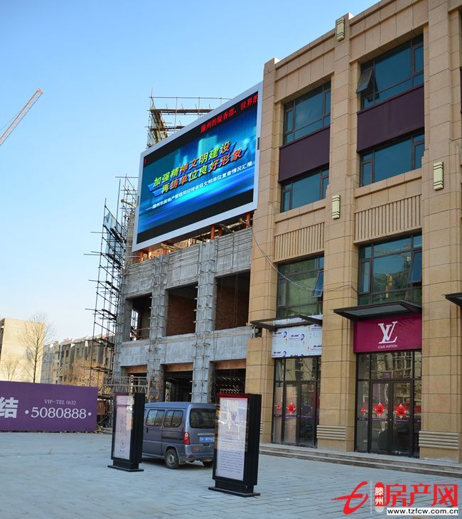 市房地產服務中心 2014-03-06日前,一塊超大的高清LED顯示屏亮相中房·緹香郡。據負責安裝此屏的徐經理介紹,該顯示屏寬5.76m,長11.04m,底端距離地面高度9m,采用戶外清晰度最高的PH8LED全彩顯示屏,點間距8mm,清晰度高達15762點/平方,可以通過播出文...