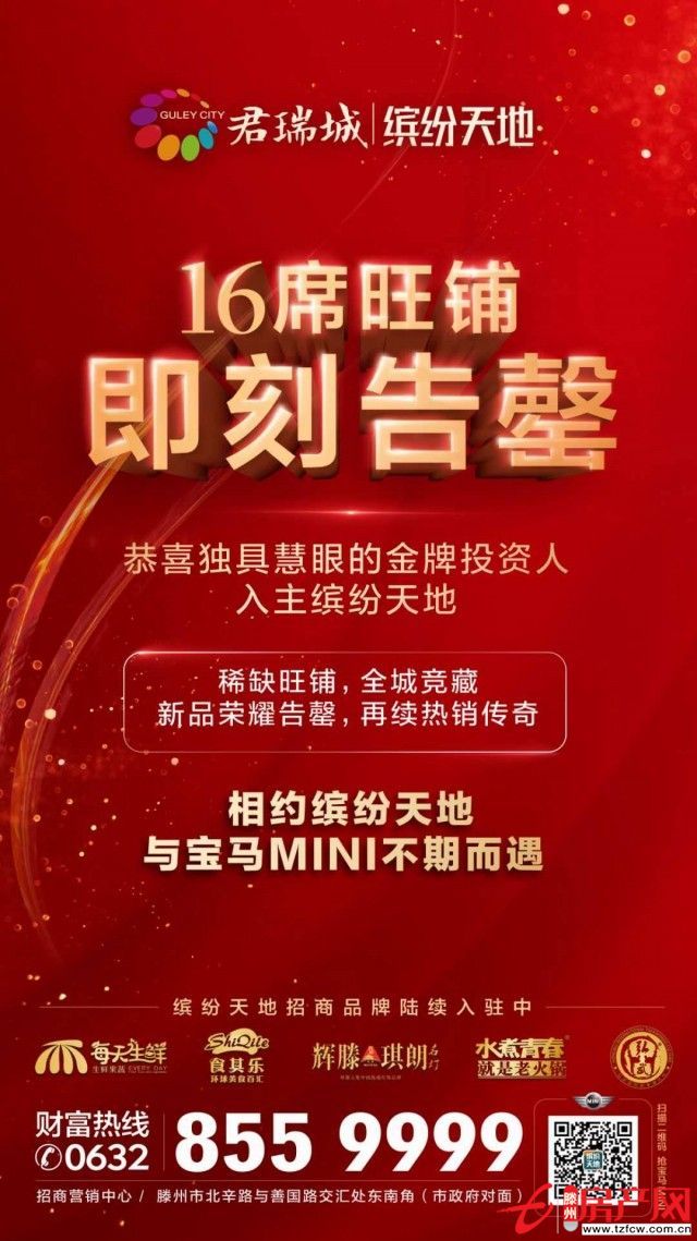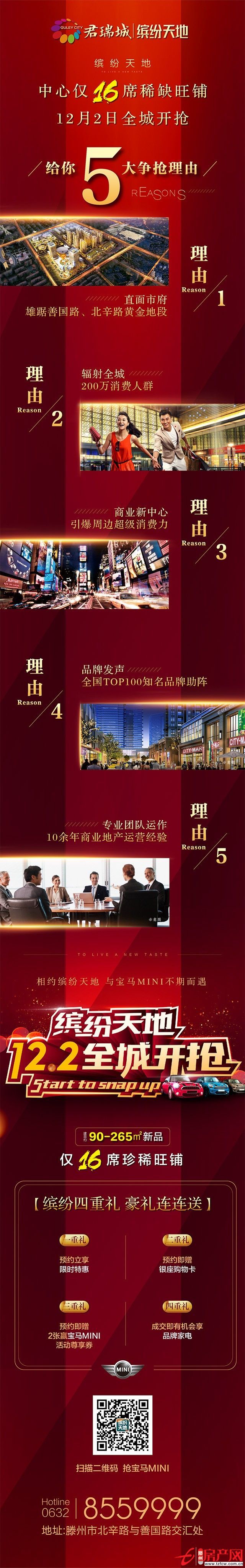 滕州房產網 2017-12-01君瑞城繽紛天地中心僅16席旺鋪稀缺地段一鋪難求專業商管聚財無憂距離全城開搶還有2天好鋪不等人...