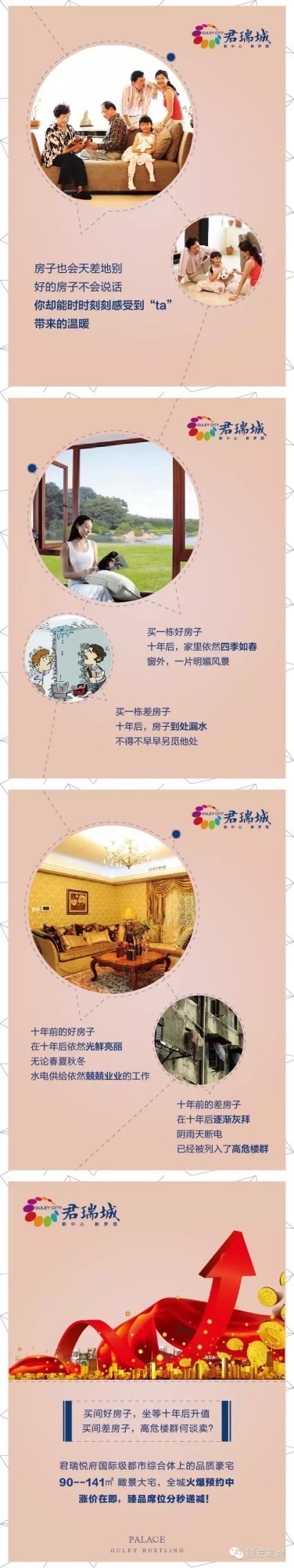 滕州房產網 2015-11-26那么為什么說君瑞悅府是市府中軸上的國際級品質好房?而又為什么購買君瑞悅府后會漲價、漲價、漲價?且看下面君瑞悅府的滕州“六宗最”:1.最中心,市府中軸最后一塊黃金寶地作為滕州首席的中央官邸,君瑞悅府雄踞市府旁最后一塊土地,獨占滕州城北高端住宅...
