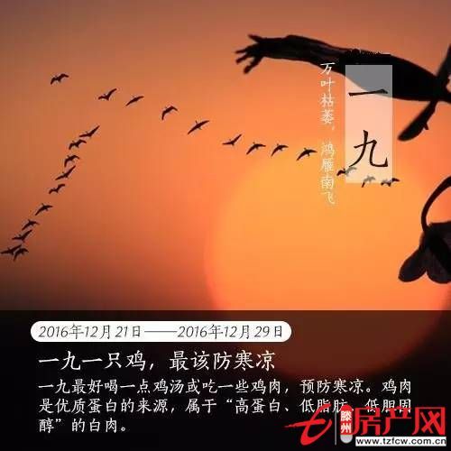 滕州房產網 2017-01-09我國素有“數九寒冬”的說法:從冬至開始,每9天為一“九”,過上九九八十一天“出九”。今天已是二九第六天,一年中最冷的時光就要到了,俗話說“學會過一冬,來年無病痛”,如何健康度過寒冬,為來年儲備能量?九九養生指南,溫暖你的冬天!暖暖和和冬過去...