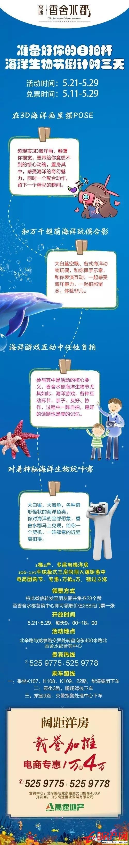 2016年5月21日,凝聚業界內外目光于一身的香舍水郡舉辦的首屆海洋生物節活動,不僅吸引了眾多各界媒體的關注,早晨時間更迎來了3200余位客戶朋友的到訪,現場氣氛火爆至極!香舍水郡再一次用事實證明了其強大的品牌實力與號召力?;鸨F場精彩不斷...