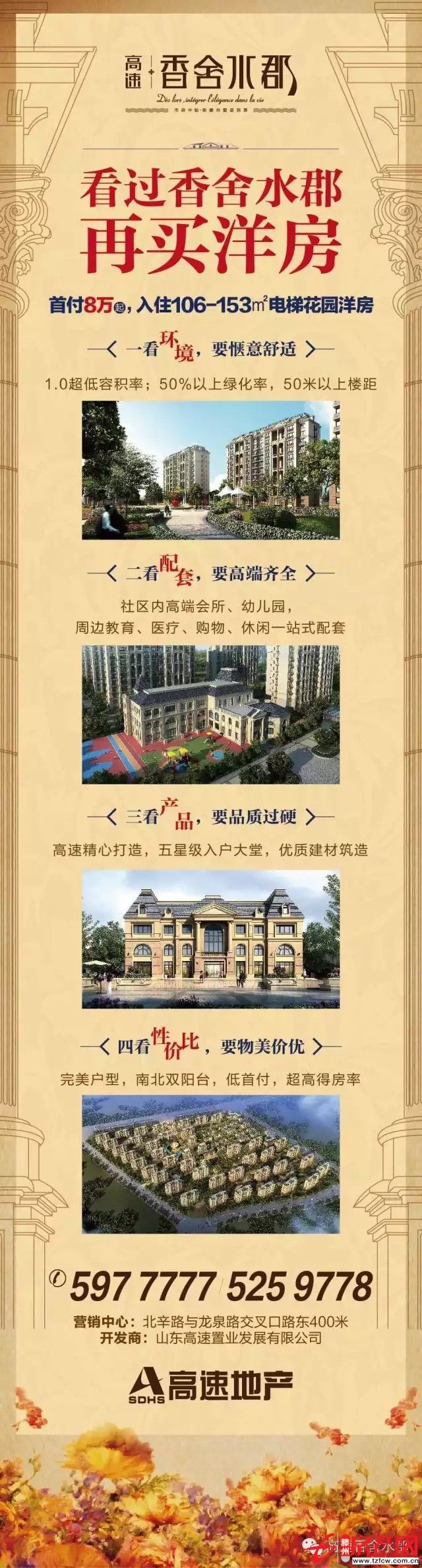 滕州房產網 2016-02-2011月8日高速·香舍水郡在萬眾期待中,迎來盛大開盤!當天數百人到場,共同見證了這一宏大的開盤盛典。開盤當天,高速·香舍水郡推出的106-275㎡墅境花園洋房銷售火爆,開盤勁銷破億,去化8成,一舉引爆整個滕州!高速·香舍水郡的開盤熱銷離不開廣...