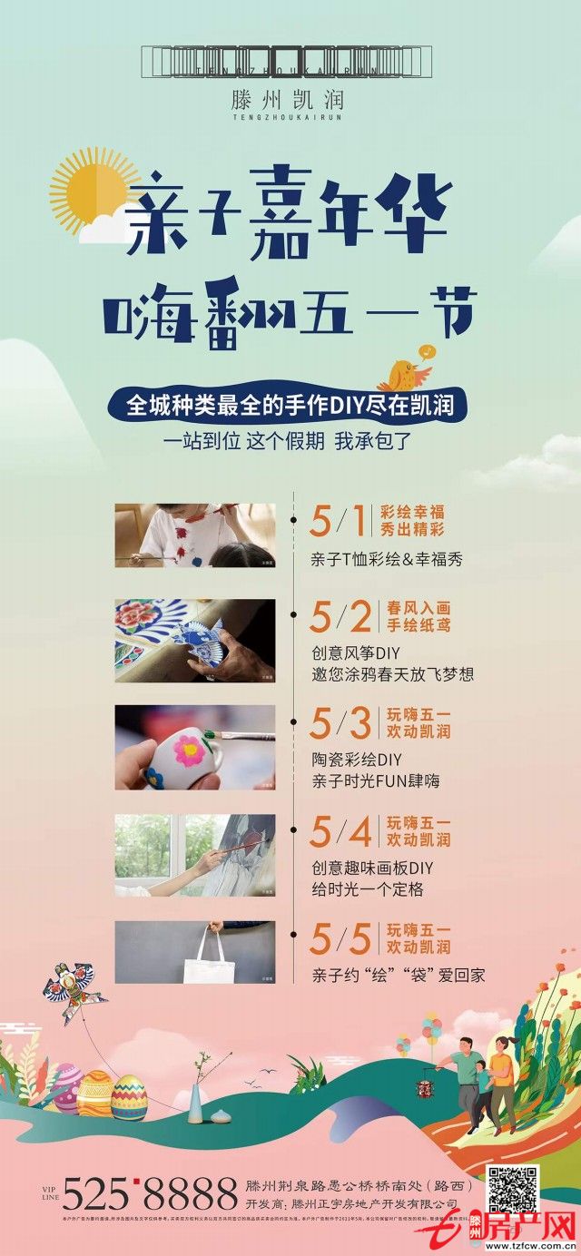 滕州房產網 2021-05-10溫柔和煦的春風不僅吹綠了草木,吹紅了桃花吹來了蝶舞蜂飛還吹醒了世界上各種五彩繽紛的事物5月1日-5日9:00-17:00滕州凱潤花園特意在營銷中心舉辦了繽紛有趣的「全品類手作DIY」活動現場歡聲笑語不斷氣氛溫馨又美好5月1日活動還未正式開始...