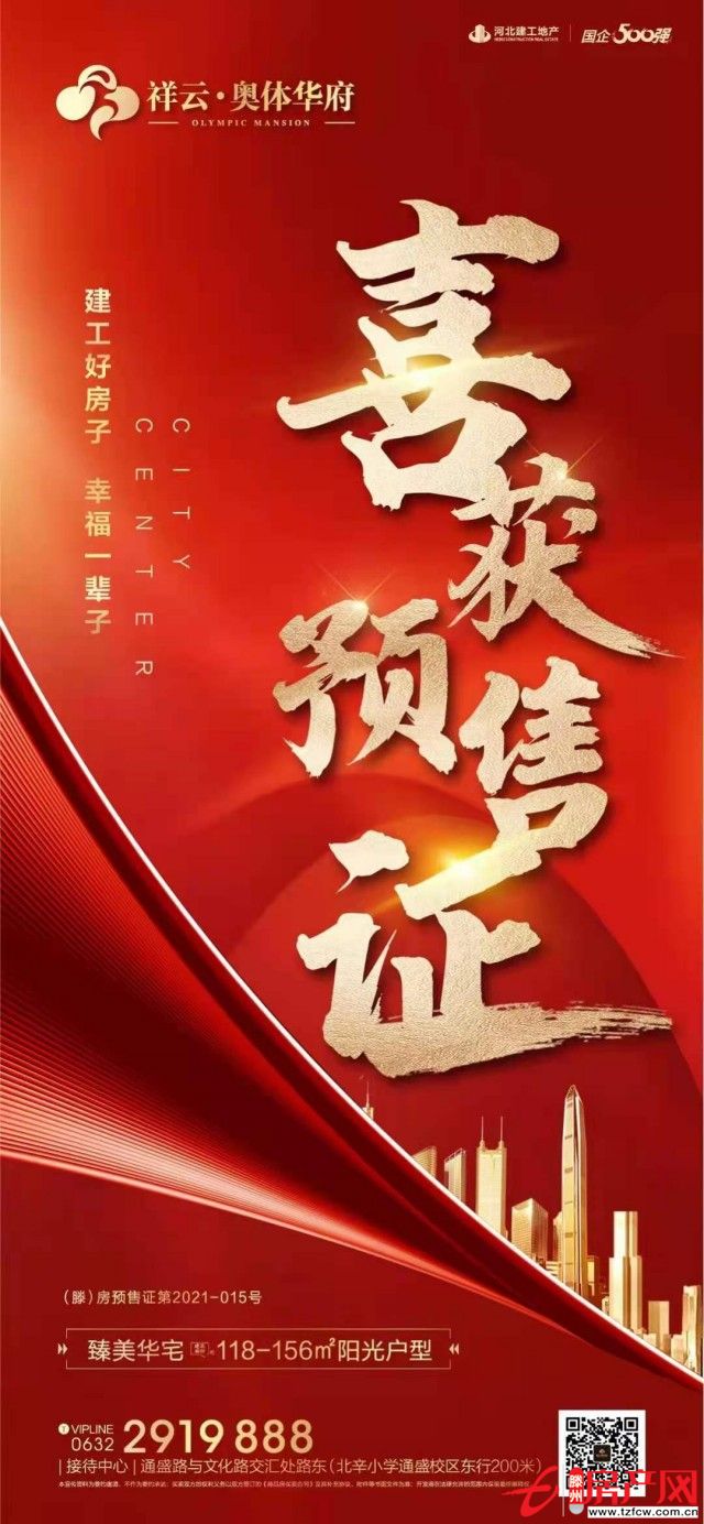 日前,滕州市行政審批服務局核發滕州市侉莊居區域改造項目祥云·奧體華府二期16#、20#、21#、25#、26#樓及地下車庫商品房預售許可證?!渡唐贩款A售許可證》號為:(滕)房預售證第2021-015號。該項目位于通盛路北側、龍泉路西側。批準...