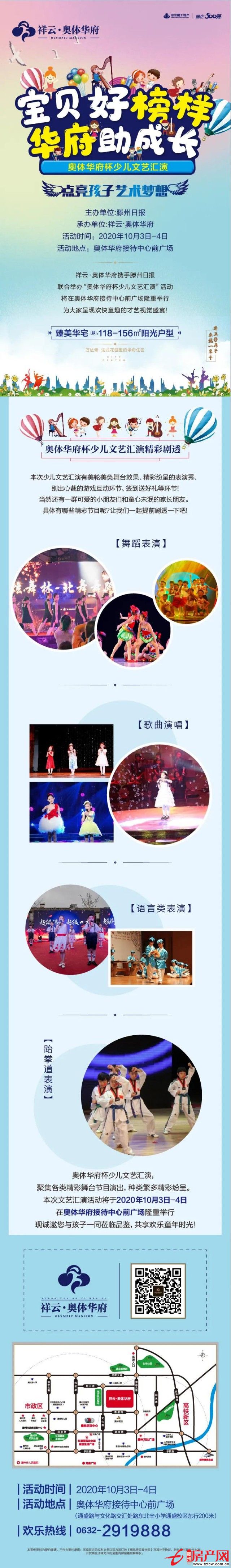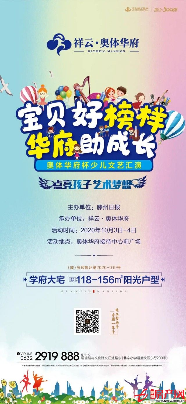 滕州房產網 2020-09-30奧體華府杯少兒文藝匯演即將盛大啟幕寶貝好榜樣,華府助成長建面約118-156平米書香大宅...