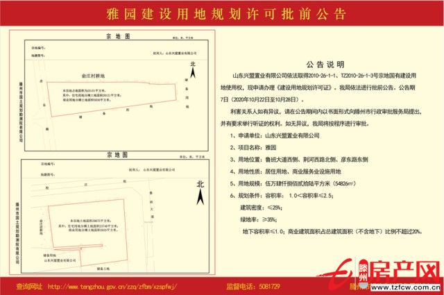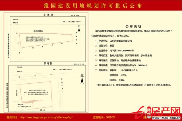 滕州房產網 2020-11-09滕州誠園項目建設用地規劃許可證變更公告我局于2019年8月22日核發了“滕州誠園項目”《建設用地規劃許可證》,(證號:地字第370481201900044號),現山東興盟置業有限公司申請將項目名稱變更為“雅園”,我局于2020年3月30日同...