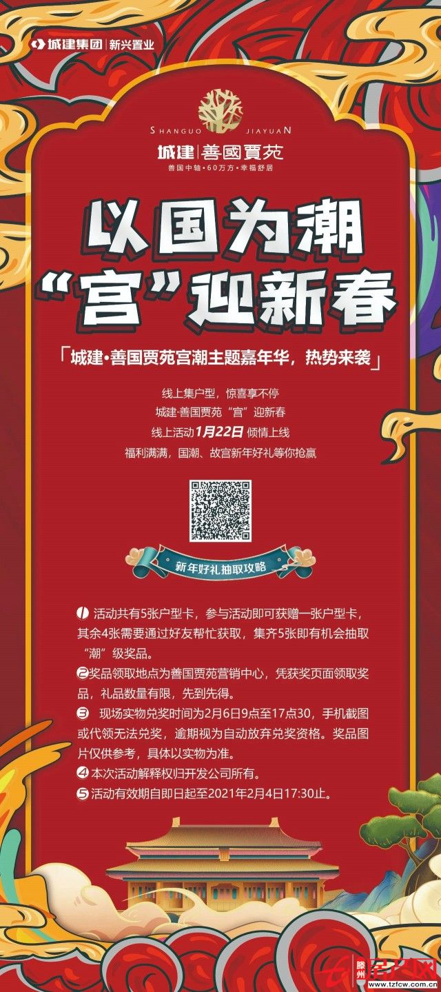 滕州房產網 2021-01-30城建·善國賈苑宮潮主題嘉年華熱勢來襲集戶型卡抽取潮級好禮約95-153㎡全系戶型當紅新品盛勢加推...