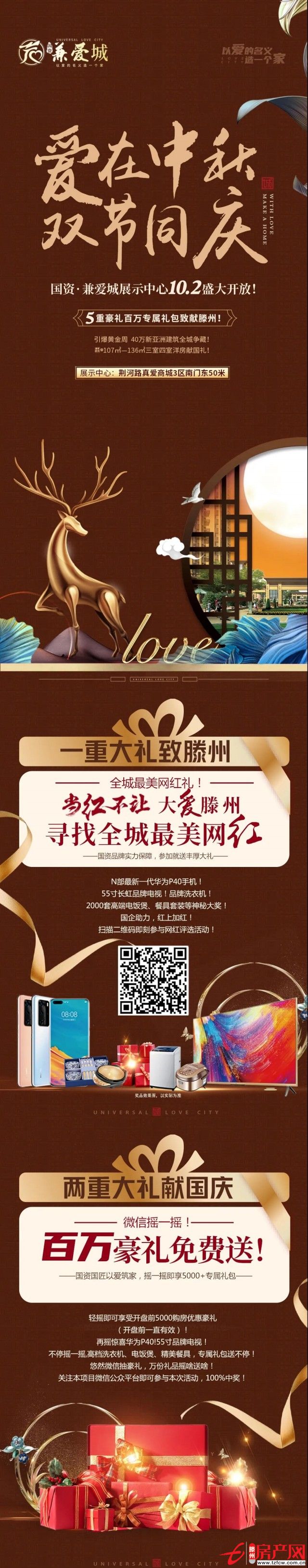 滕州房產網 2020-10-02祖國華誕萬民賀,中秋團圓全家福。在這雙節同慶的日子里,國資·兼愛城“微信搖一搖,百萬豪禮免費送”活動9月26日火爆開啟!據悉,展示中心現場為客戶嘉賓準備了5000+專屬大禮包,更有華為P40、55寸品牌液晶電視、高檔洗衣機、電飯煲、電餅鐺、...