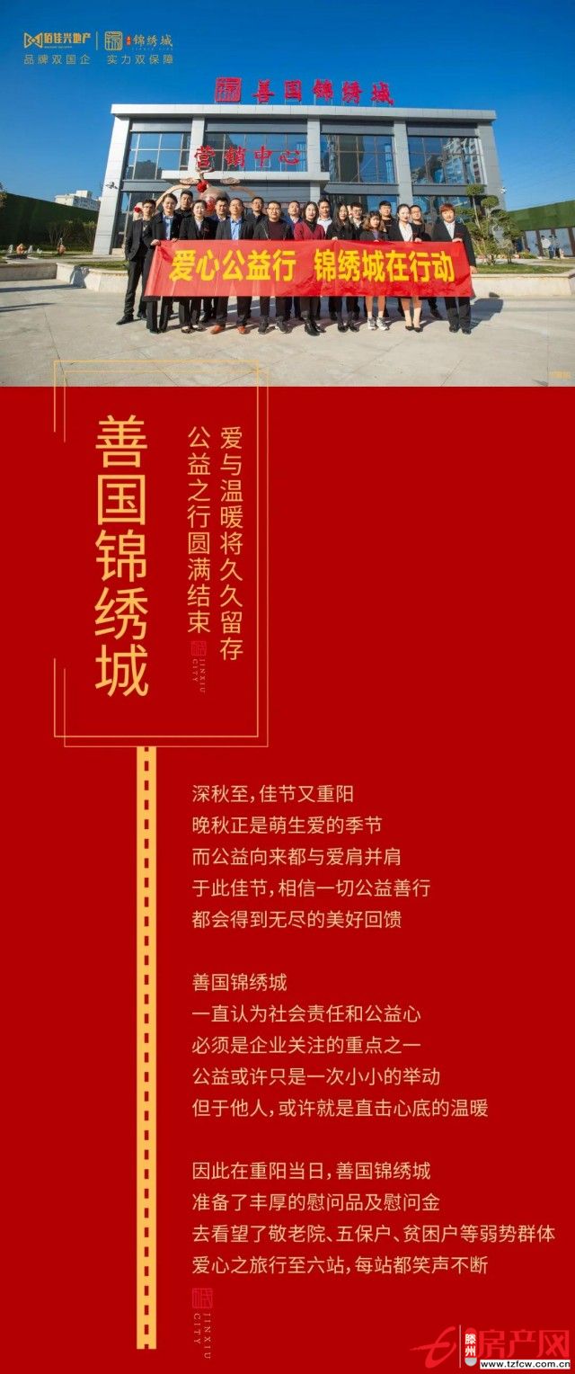 10月24日一大早,錦繡城營銷中心的工作人員就開始了一天的忙碌,“情暖重陽為愛行動”錦繡城愛心公益三個小分隊開始往車上裝蘋果&橘子禮盒、達利園法式軟面包、大米和食用油等愛心貨物。在這一天的行程里,三支愛心公益小分隊共計前往六個敬老院,分別送...