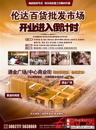 2012-07-20倫達百貨批發市場——開業進入倒計時倫達國貿城百貨批發市場總建筑面積10萬平方米涌金廣場/中心商業街稀缺沿街鋪,全城發售中心絕版地段無限財富全城共啟一樓小商品,二樓服裝,三樓家居。...