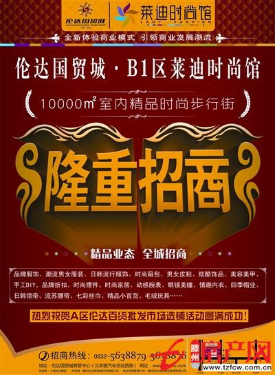 2012-07-30倫達國貿城——B1區萊迪時尚館隆重招商精品業態,全城招商。10000㎡室內精品時尚步行街招商熱線:0632—56388795638876...