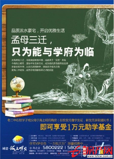 2012-08-23城建·海上明月——孟母三遷,只為能學府相鄰老二中在校學子或父母于海上明月購房即可享受1萬元助學基金。住宅VIP會員“一萬抵三萬”限量招募中......地址:荊河東路與荊河交匯處東南熱線電話:0632—58002225800888...