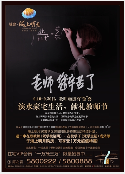 2012-09-27春蠶到死絲方盡,蠟炬成灰淚始干海上明月濱水豪宅生活,以最誠摯的詩意獻禮教師節辛勤耕耘的園丁們,是時候該為自己考慮了!銷售熱線:0632-5800222/5800888售樓地址:滕州荊河東路與文昌路交匯處...