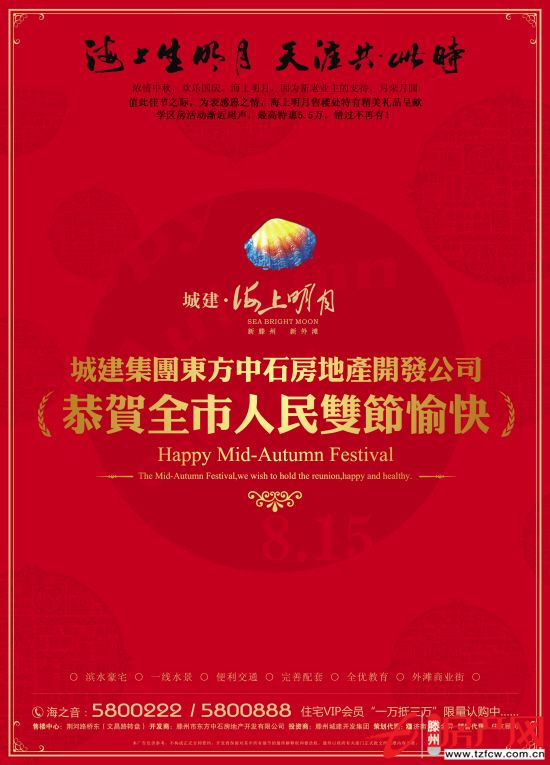 2013-02-26海上生明月天涯共此時濃情中秋歡樂國慶海上明月值此佳節之際特有禮品呈現海之音:0632-5800222/5800888售樓中心:荊河橋東(文昌路轉盤)...