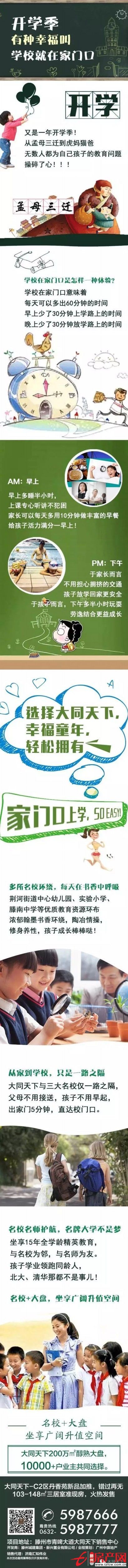 滕州房產網 2016-07-14戰國時期“孟母三遷”的佳話一直流傳至今,讓孩子讀好書,有一個好的教育環境,是每一個家長的心愿,追溯到現在大概就是“擇校而居”。大同天下,為滕州家庭打造了一所名副其實的人文之地,教育之城!大同天下總建面200萬平方米,為滕州罕有之超級大盤,項...