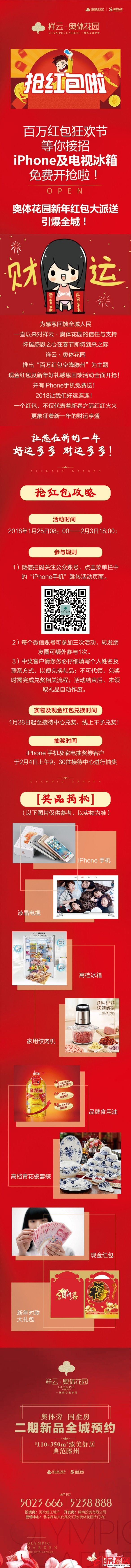 滕州房產網 2018-02-02沒有冠冕堂皇的廢話、沒有夸大其詞的虛偽、沒有深藏巨坑的套路,有的只是對你們的一份真摯的愛,祥云·奧體花園百萬紅包開始派送啦!特別通知:抽中iPhone抽獎券;液晶電視抽獎券;高檔冰箱抽獎券一定要記得,1月29日起至奧體花園營銷中心出示你的中...