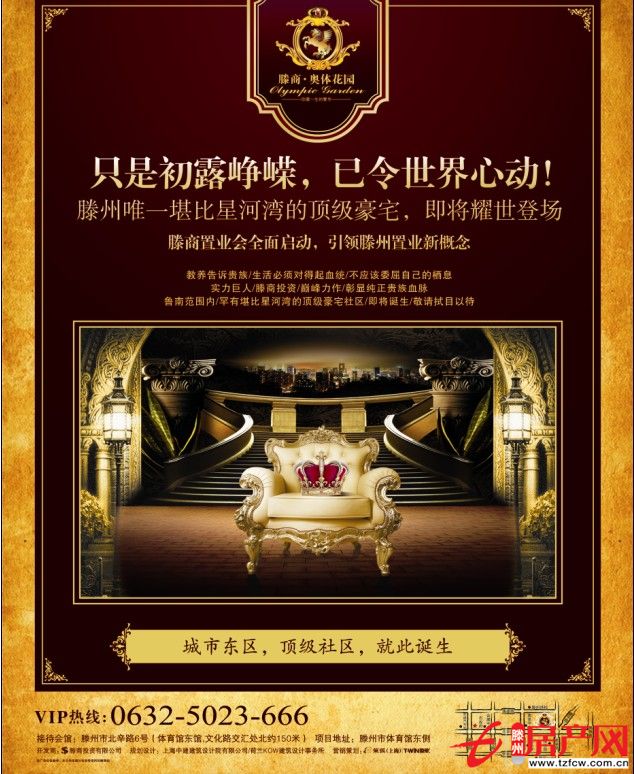 2012-08-31滕商·奧體花園滕商置業會全面啟動,引領滕州置業新概念滕州唯一堪比星河灣的頂級豪宅,即將耀世登場教養告訴貴族生活必須對得起血統不應該委屈自己的棲息實力巨人滕商投資巔峰力作彰顯純正貴族血脈魯南范圍內罕有堪比星河灣的頂級豪宅社區即將誕生敬請拭目以...