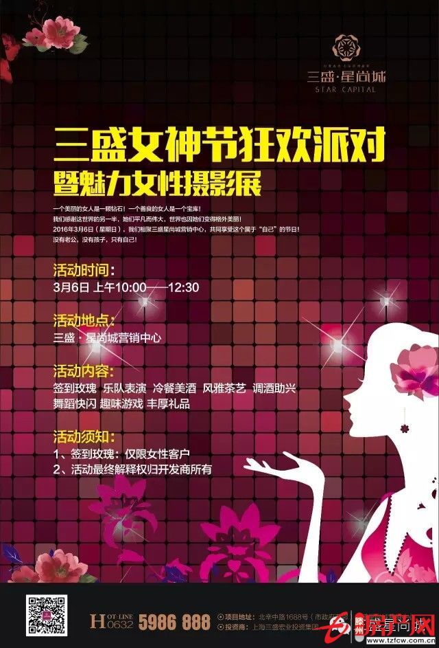 滕州房產網 2016-03-09繽紛的春天像櫻桃般的誘人,花香四溢的春天到了,怎能少了相聚的快樂。特此,借著濃濃的春意;3月6日上午10點,三盛“女神節’狂歡派對暨魅力女性攝影展在三盛·星尚城營銷中心溫情上演?;顒蝇F場用鮮花與氣球精心裝點,到訪女性簽到并送上了我們準備的精...