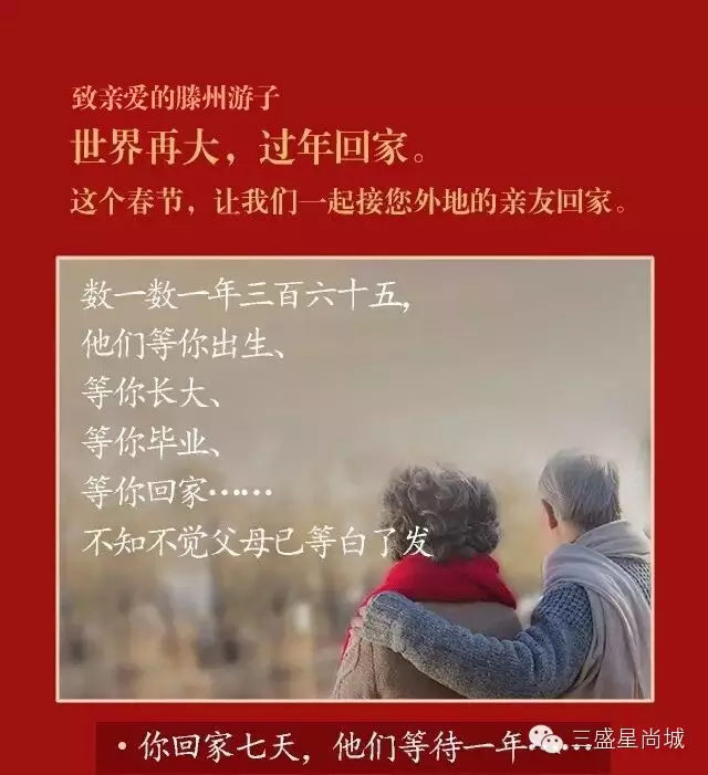 滕州房產網 2016-02-152016年的春節悄然而至,春節是中國傳統闔家團聚的日子,也許在外務工的父母此刻正盼望著家中留守的兒女,家中的兒女正期盼著與外出務工父母的團聚。如果您已經回到滕州,正愁車不好打,票那么貴,有家卻難回,請速與我們聯系!【我是滕州,等你回家】讓愛...