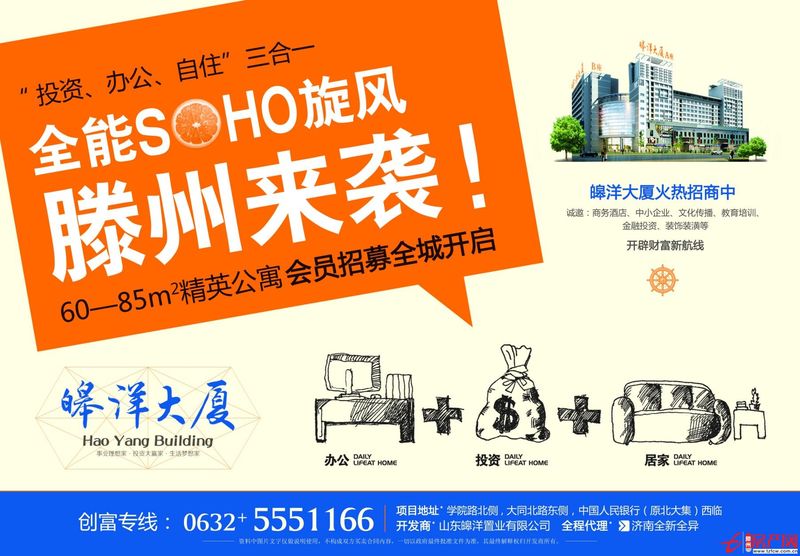 2013-08-06皞洋大廈SOHO公寓會員客戶登記已全城啟動,60—90㎡的全能SOHO公寓,將“投資、辦公、自住”三種功能合三為一,極具投資、升值潛力!有對此項目感興趣的客戶可前往詳細了解!...