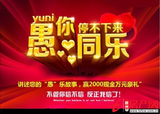 滕州房產網 2015-04-18愚人節到了,Happy愚人節!一年一度最有趣的節日---愚人節。盡管是源自國外,但到了中國,卻展現出非比尋常魅力,因為在這個節日,沒有路人,都是主角。如果您熱愛生活留心生活的每個細節如果您在意生活的每分快樂,并樂于分享如果您留意生活的每個奇...