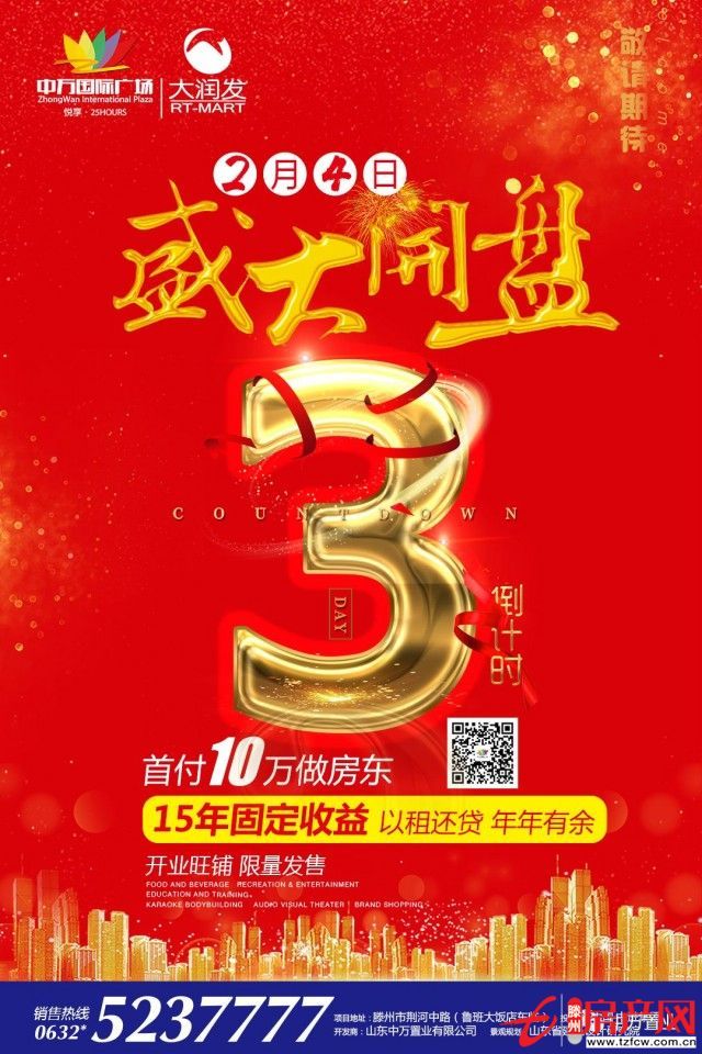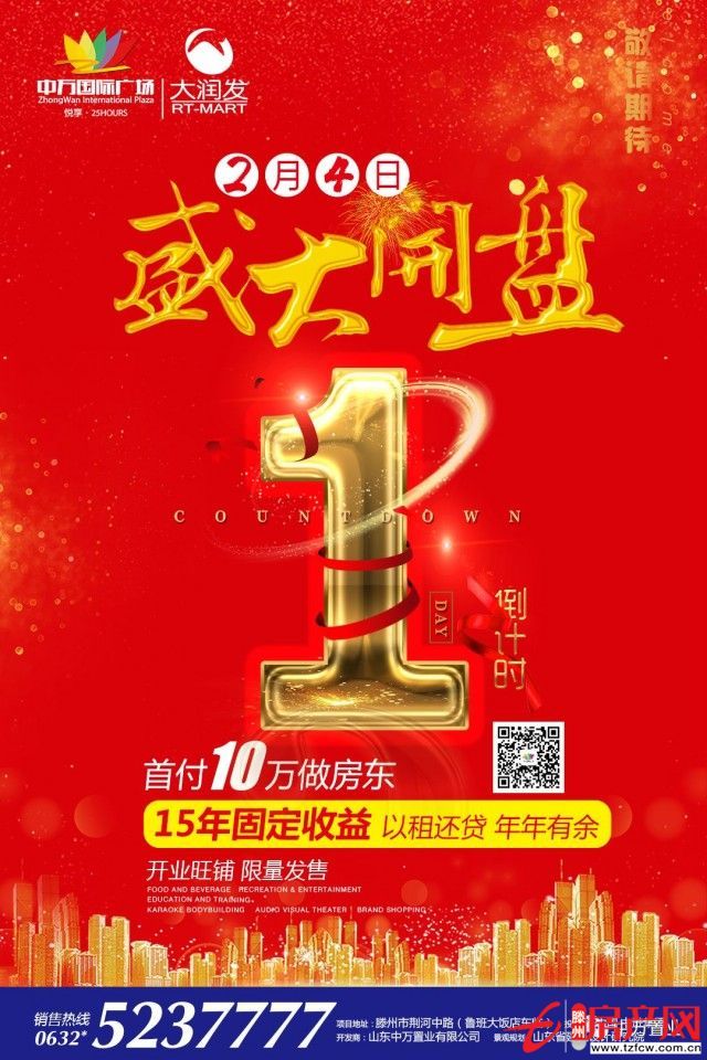 滕州房產網 2018-03-01冬去春來,讓愛升溫,中萬國際廣場全面啟動。活動時間:2月11日—3月3日(臘月廿六—正月十六),返鄉創富3重奏,致獻繽紛好禮,好運享不停,這個春節,讓您感受別致的溫暖!一重禮:首付10萬搶品牌旺鋪二重禮:購鋪贏1噸汽油大獎三重禮:到訪送春聯...