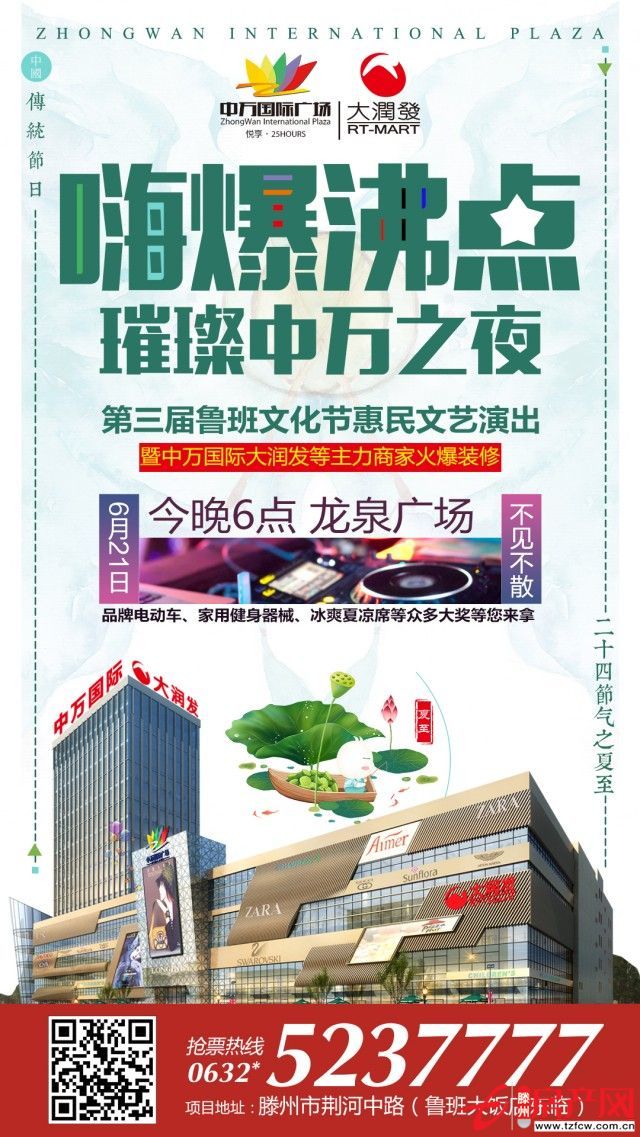 滕州房產網 2017-06-286月21日晚中萬國際在龍泉廣場隆重舉行大潤發超市、時代影院、零距離健身、萌貝兒親子樂園、就樂了娛樂、紅黃藍親子園、百奇源美食廣場、臺北嘜田KTV主力商家火爆裝修正式啟動?,F場人海一片,共同見證中萬國際廣場大潤發率領主力商家掀起裝修熱潮,激動...