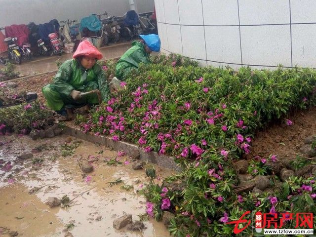滕投集團 2018-06-014月13日,淅淅瀝瀝的小雨下個不停,在龍泉首府(二期)景觀綠化工程施工現場,工人們正穿著雨衣、雨鞋、戴著安全帽栽植到場小苗,陰雨天氣并沒有影響他們的施工熱情,工作有條不紊的進行,同心協力、配合默契,施工現場一派熱火朝天的景象。龍泉首府(二期...
