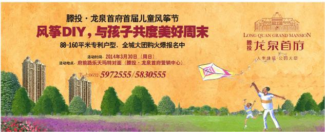 滕州房產網 2014-04-02“人生佳境,公園大邸”,滕投·龍泉首府3月30日于營銷中心舉辦首屆兒童風箏節,特邀您帶孩子一塊參與,繪制快樂,放飛心情。5——12歲的兒童可免費參加,僅限100名,請提前撥打5830555報名哦!滕投·龍泉首府全城大團購火爆報名中,打造貴族...