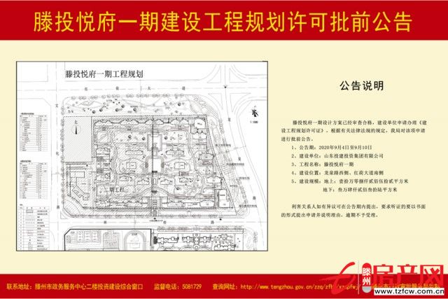 • 滕投·悅府一期建設工程規劃許可批前公告