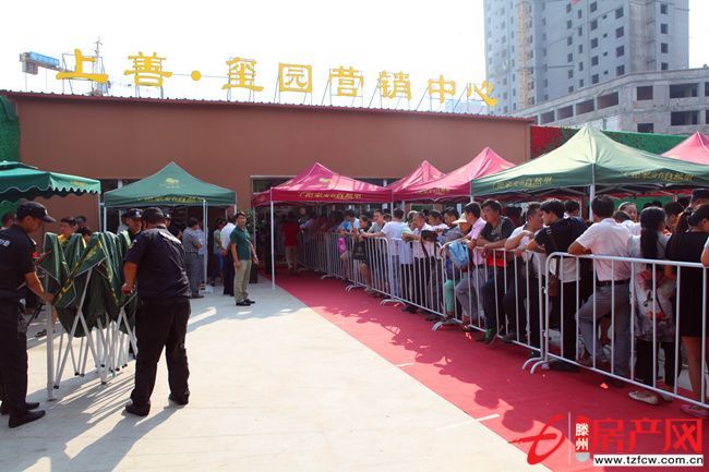 9月6日,上善·璽園認籌活動火爆開啟。上午8點,銷售中心的門前已經被前來認籌的人群擠的滿滿當當,一個個小板凳組成的排隊長龍在活動現場有序排開,有認籌意向的群眾在銷售中心外耐心等待進入銷售中心繳納認籌押金。