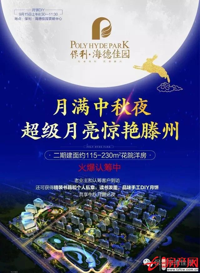保利·海德佳園中秋佳節活動即將呈現,為您奉上一個如神話、如傳說般的夢境月圓之夜,品著手工月餅,看著超級月亮驚現滕州,更多精彩敬請期待!