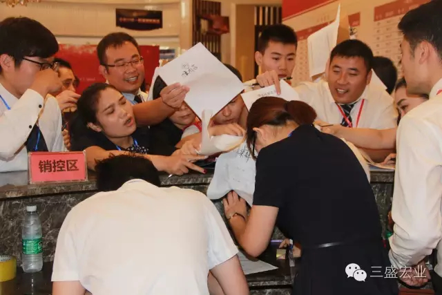 早上7點售樓處內就已經人潮涌動,客戶不斷涌向營銷中心,9點整售樓處正式開始選房,按排號順序進入選房區選房。三盛·星尚城營銷中心內熱鬧非凡,認購者非常踴躍積極。而銷售現場的異?;鸨?,并沒有影響客戶有秩序的進入銷售現場,在置業顧問熱情講解中,選房、換取收據、簽約、復核,整個流程秩序井然。在營銷中心等候區內,三盛·星尚城為來賓們也精心準備了水果、飲品,客戶在緊張選房的同時也被三盛·星尚城的品質服務所打動!