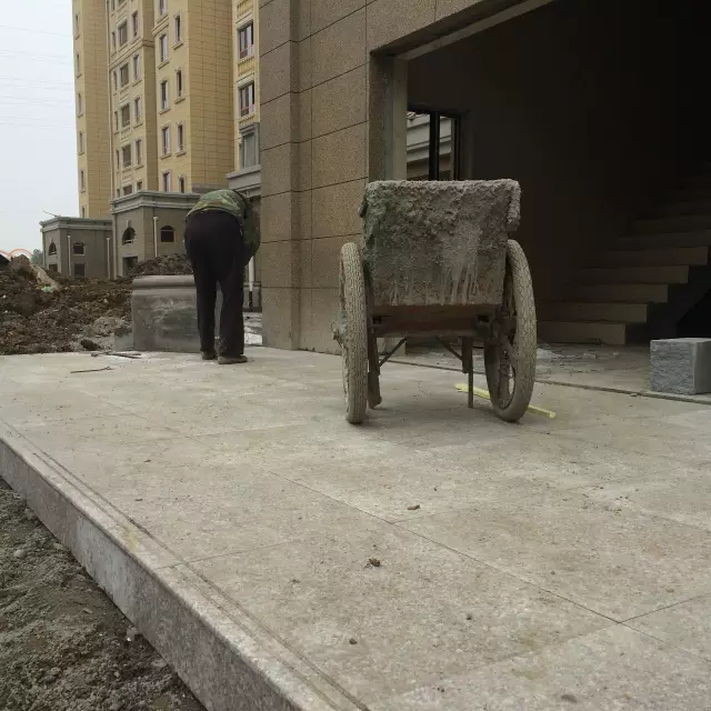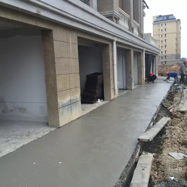 車庫門前路面硬化開啟,平整的水泥鋪設進行中,想象未來愛車入家行駛在這通暢大道之上,無噪無碰,平坦進出。