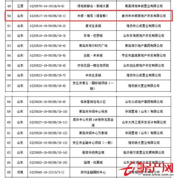 近日,中國房地產業協會、住房和城鄉建設部住宅產業化促進中心聯合發布了2015—2016年度“廣廈獎”入圍項目的公示公告,山東省共15個項目入圍。由滕州市中房房地產開發有限公司開發的中房·緹香郡小區項目入圍,成為我市唯一入圍項目。