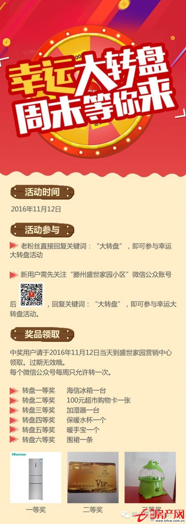 再次提醒,中獎客戶請于11月13日(本周周日)憑微信號到盛世家園營銷中心兌換禮品。過期作廢!