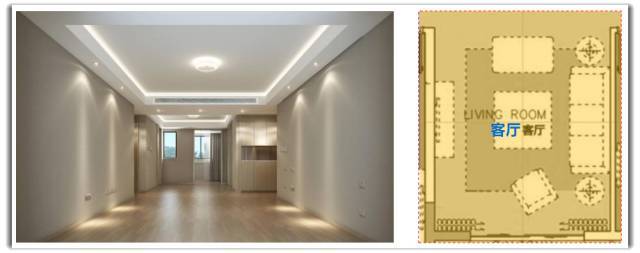 加之客廳朝南的設計,并配備寬度超過6m的觀景陽臺,將室外引入室內,增加的采光,使空間尺度進一步放大。