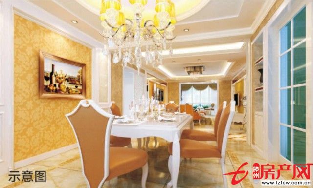 大面寬的開門設計,極大的增加了餐廳與廚房之間的互動,也能讓整個用餐區域,更加通透,開闊,常規放置一套六人位餐桌椅,也不會顯得局促。