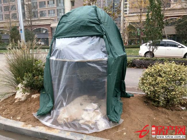 11月25日,筆者在荊河東路看到兩側的桂花、盆景等樹木已穿上特制的“防寒服”,以確保安全過冬。