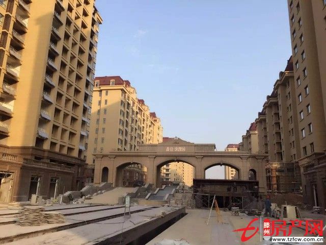 10、小區道路基礎完成,大門景觀完成75%,小區景觀小品結構完成40%。