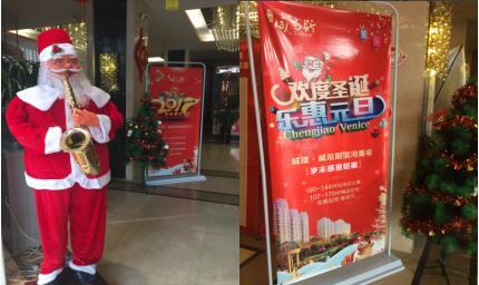 走進營銷中心,一個吹著薩克斯的圣誕老人奏歌歡迎,