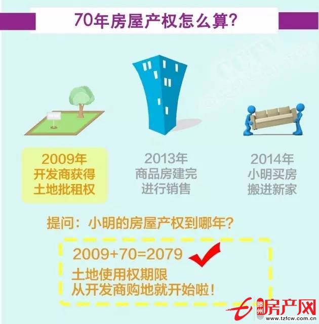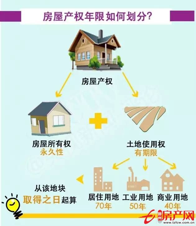 也就是說房子的所有權是永久的,只要房子不塌,這房子就一直是產權人的,但是我們是社會主義國家,土地是國家的。根據項目的立項不同,租用國家土地的周期也不同,住宅70年,工業/科教文衛體/綜合類50年,商業/旅游/娛樂40年。