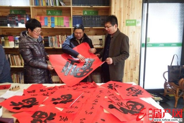 1月15日上午,為活躍節日氣氛,豐富文化生活,中房緹香郡小區聯合滕州市圖書館在緹香郡社區書吧舉辦了“春聯送萬家·歡樂過大年”寫春聯、送春聯活動。中國國畫院魯南分院的多位書法家為市民免費寫春聯、送春聯,寄予新春的美好祝福?;顒赢斕欤瑫覀兿蛏鐓^居民贈出了200多副春聯。